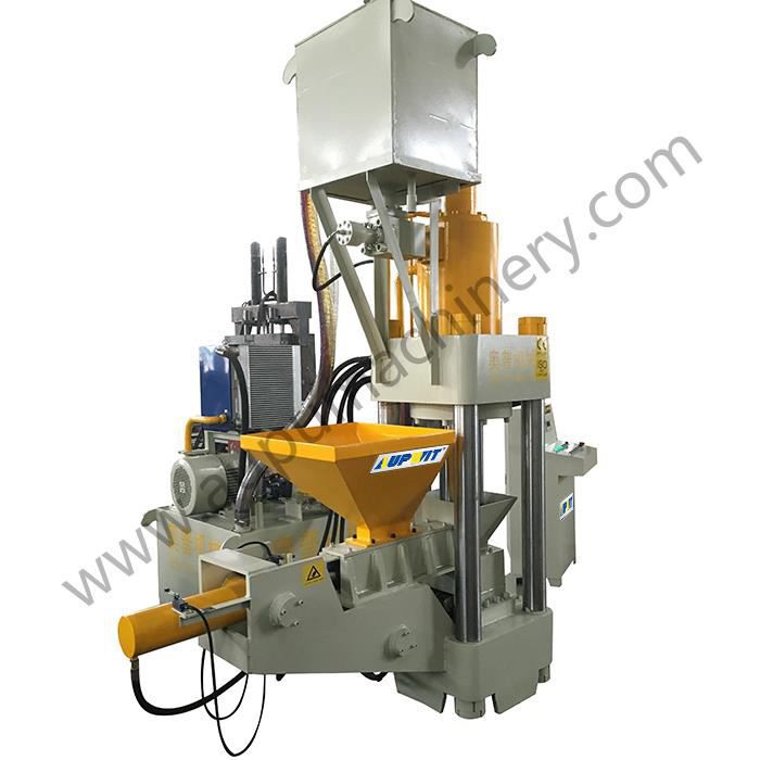 Y83 series cast iron briquetting press machine Particle shape cast iron powder, high grade of ductile cast iron, alloy, steel, copper and other metal filings can be cold pressed to cylindrical by Y83 Series briquetting press machine, with density of 5.5-6ton/m3 (adhesion agent is not used) and production of 8-20 tons in every shift. The machine is of a vertical structure with upper and lower beams made of cast steel, and it outputs block automatically once feed with materials. It also can be equipped with different circulation cooling systems.