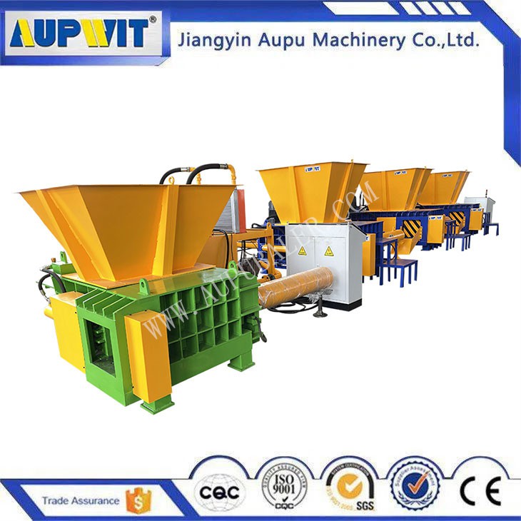 Aupu professionally developed Y81PTZ series automatic metal briquetting machine has higher efficiency and larger output. Suitable for scrap metal scraps: aluminum scraps, copper scraps, iron scraps, etc., can be used to pack metal cans such as cans. This machine comes with a large hopper and can be equipped with conveyor belts to increase efficiency. Hopper size and discharge size can be customized according to customer requirements.